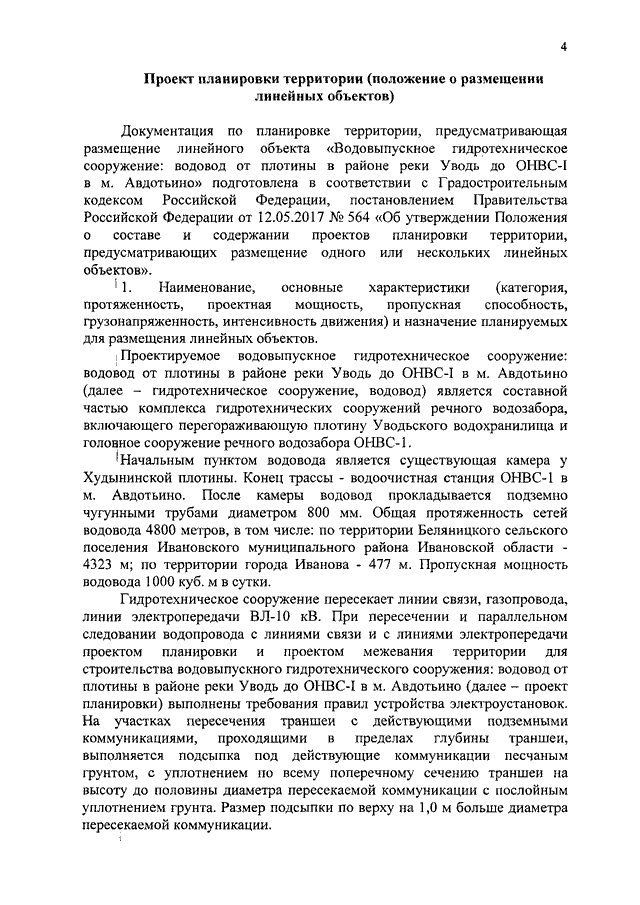 Распоряжение Правительства Ивановской области от 28.12.2018 N 177-рп "Об утверждении проекта планировки и проекта межевания территории для строительства водовыпускного гидротехнического сооружения: водовод от плотины в районе р. Уводь до ОНВС-I в м. Авдотьино"