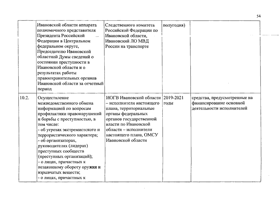Распоряжение Правительства Ивановской области от 28.12.2018 N 179-рп "Об утверждении плана межведомственных мероприятий по профилактике правонарушений и борьбе с преступностью на территории Ивановской области на 2019 - 2021 годы"
