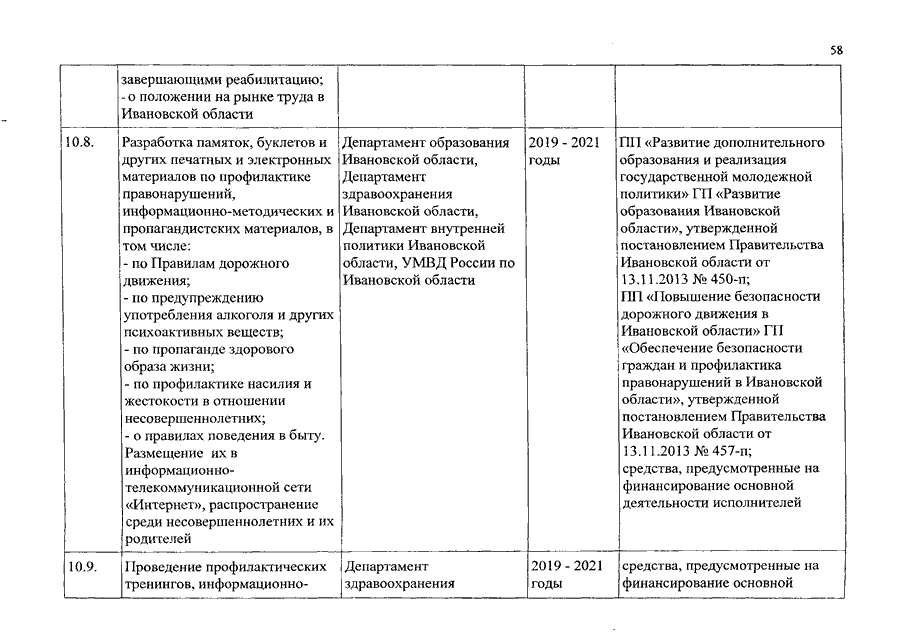 Распоряжение Правительства Ивановской области от 28.12.2018 N 179-рп "Об утверждении плана межведомственных мероприятий по профилактике правонарушений и борьбе с преступностью на территории Ивановской области на 2019 - 2021 годы"