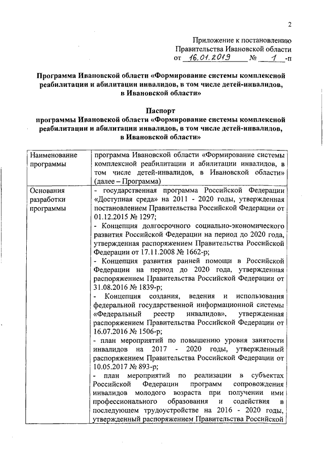 Постановление Правительства Ивановской области от 16.01.2019 N 1-п "Об утверждении программы Ивановской области "Формирование системы комплексной реабилитации и абилитации инвалидов, в том числе детей-инвалидов, в Ивановской области"