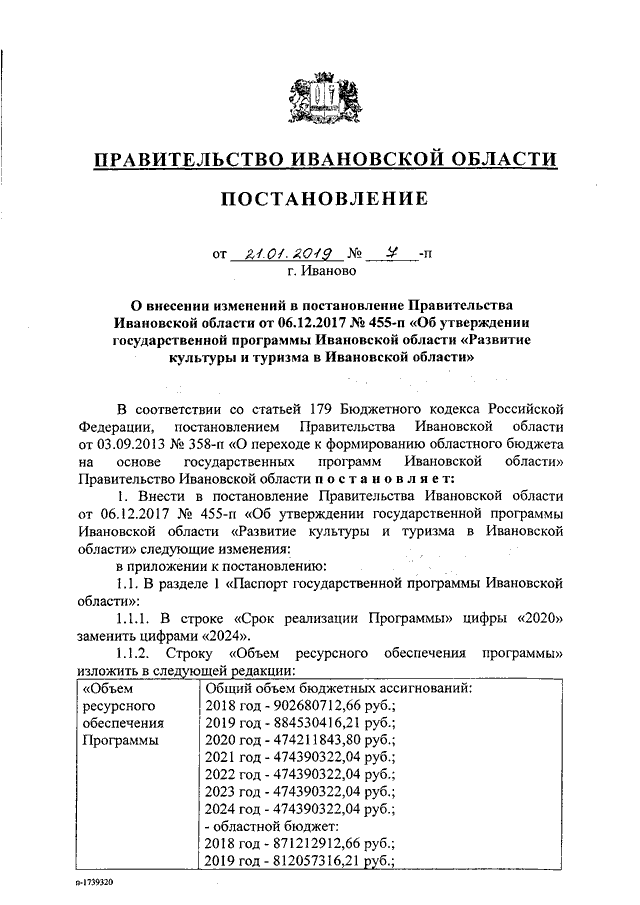 Постановление Правительства Ивановской области от 21.01.2019 N 7-п "О внесении изменений в постановление Правительства Ивановской области от 06.12.2017 N 455-п "Об утверждении государственной программы Ивановской области "Развитие культуры и туризма в Ивановской области"