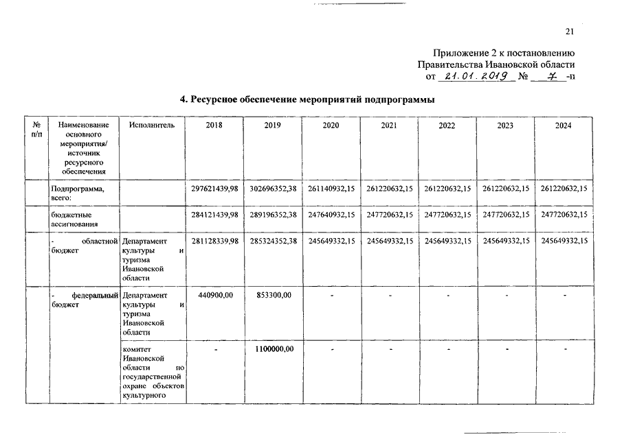 Постановление Правительства Ивановской области от 21.01.2019 N 7-п "О внесении изменений в постановление Правительства Ивановской области от 06.12.2017 N 455-п "Об утверждении государственной программы Ивановской области "Развитие культуры и туризма в Ивановской области"