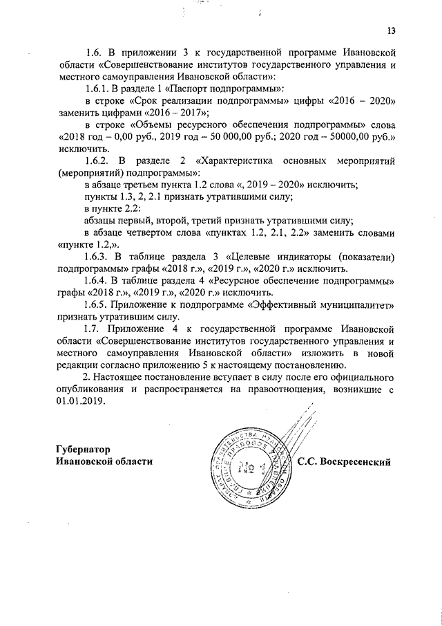 Постановление Правительства Ивановской области от 28.01.2019 N 13-п "О внесении изменений в постановление Правительства Ивановской области от 13.11.2013 N 454-п "Об утверждении государственной программы Ивановской области "Совершенствование институтов государственного управления и местного самоуправления Ивановской области" (вместе с "Подпрограммой "Развитие государственной гражданской службы и наградной системы Ивановской области")