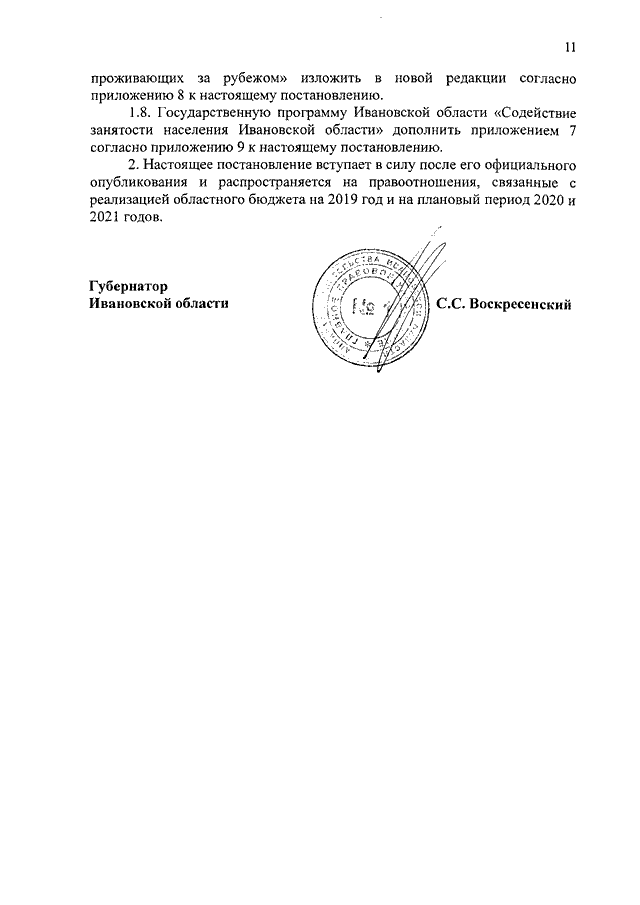Постановление Правительства Ивановской области от 28.01.2019 N 11-п "О внесении изменений в постановление Правительства Ивановской области от 09.07.2013 N 279-п "Об утверждении государственной программы Ивановской области "Содействие занятости населения Ивановской области" (вместе с "Подпрограммой "Мероприятия по содействию занятости граждан предпенсионного возраста и женщин в период отпуска по уходу за ребенком до достижения им возраста трех лет")