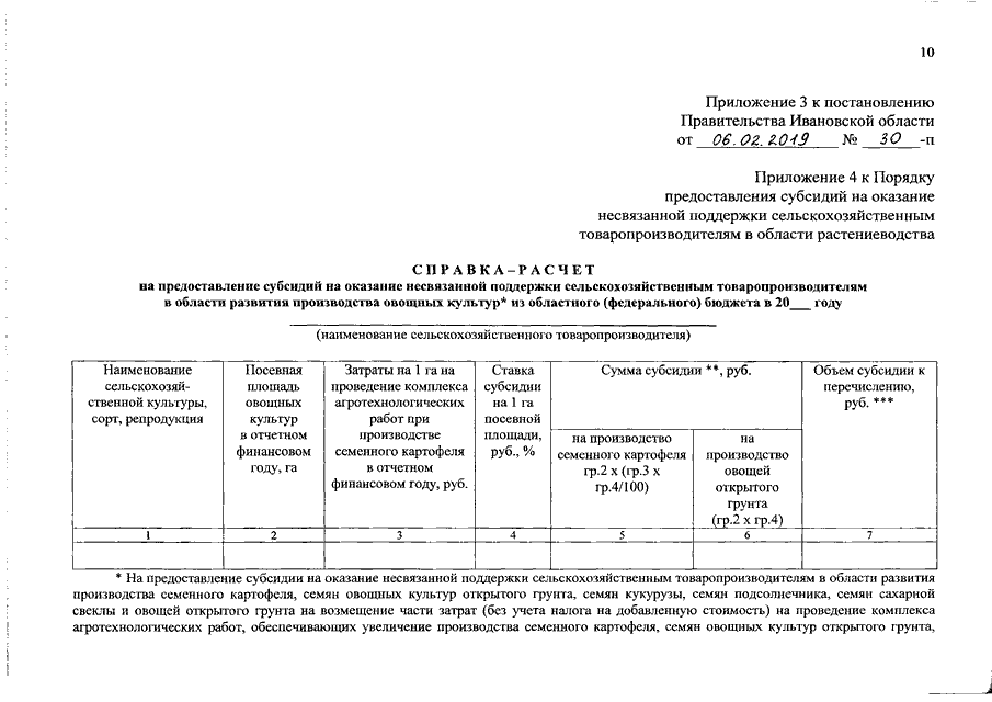 Постановление Правительства Ивановской области от 06.02.2019 N 30-п "О внесении изменений в постановление Правительства Ивановской области от 20.03.2013 N 106-п "Об утверждении Порядка предоставления субсидий на оказание несвязанной поддержки сельскохозяйственным товаропроизводителям в области растениеводства"