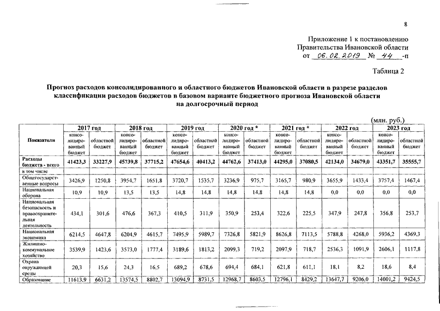 Постановление Правительства Ивановской области от 06.02.2019 N 44-п "О внесении изменений в постановление Правительства Ивановской области от 15.02.2017 N 41-п "Об утверждении бюджетного прогноза Ивановской области на 2017 - 2030 годы"