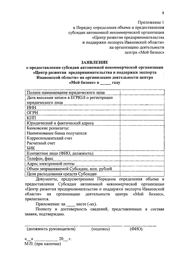 Постановление Правительства Ивановской области от 25.02.2019 N 54-п "Об утверждении Порядка определения объема и предоставления субсидии автономной некоммерческой организации "Центр развития предпринимательства и поддержки экспорта Ивановской области" на организацию деятельности центра "Мой бизнес"