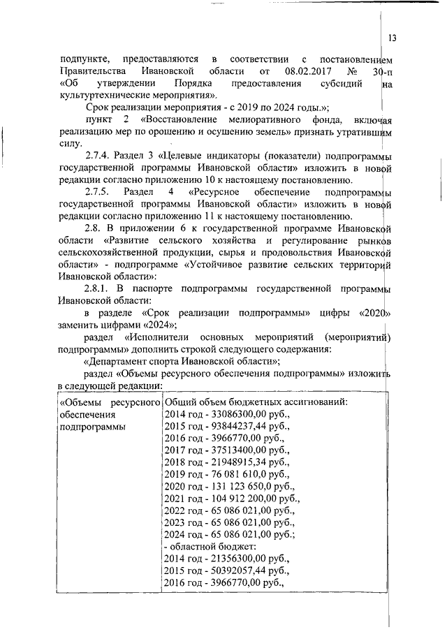 Постановление Правительства Ивановской области от 28.02.2019 N 66-п "О внесении изменений в постановление Правительства Ивановской области от 13.11.2013 N 451-п "Об утверждении государственной программы Ивановской области "Развитие сельского хозяйства и регулирование рынков сельскохозяйственной продукции, сырья и продовольствия Ивановской области" (вместе с "Порядком предоставления и распределения субсидий бюджетам муниципальных образований Ивановской области на строительство плоскостных спортивных сооружений в сельской местности")
