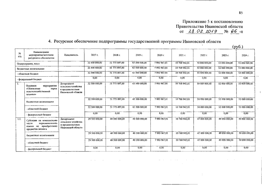 Постановление Правительства Ивановской области от 28.02.2019 N 66-п "О внесении изменений в постановление Правительства Ивановской области от 13.11.2013 N 451-п "Об утверждении государственной программы Ивановской области "Развитие сельского хозяйства и регулирование рынков сельскохозяйственной продукции, сырья и продовольствия Ивановской области" (вместе с "Порядком предоставления и распределения субсидий бюджетам муниципальных образований Ивановской области на строительство плоскостных спортивных сооружений в сельской местности")