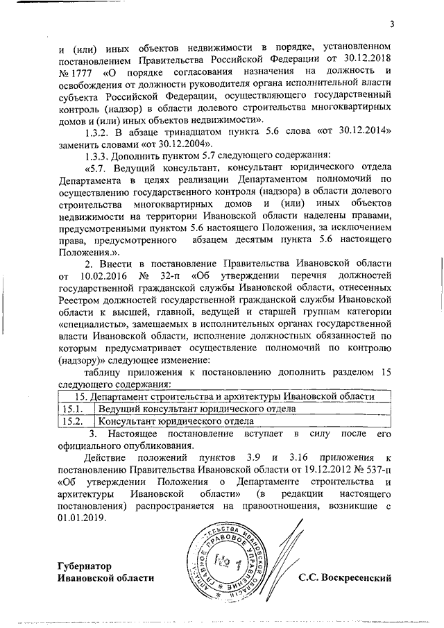 Постановление Правительства Ивановской области от 18.03.2019 N 75-п "О внесении изменений в постановления Правительства Ивановской области от 19.12.2012 N 537-п "Об утверждении Положения о Департаменте строительства и архитектуры Ивановской области" и от 10.02.2016 N 32-п "Об утверждении перечня должностей государственной гражданской службы Ивановской области, отнесенных Реестром должностей государственной гражданской службы Ивановской области к высшей, главной, ведущей и старшей группам категории "специалисты", замещаемых в исполнительных органах государственной власти Ивановской области, исполнение должностных обязанностей по которым предусматривает осуществление полномочий по контролю (надзору)"