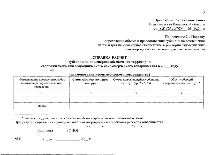 Постановление Правительства Ивановской области от 18.03.2019 N 92-п "О внесении изменений в постановление Правительства Ивановской области от 30.07.2018 N 238-п "Об утверждении порядка определения объема и предоставления субсидий на возмещение части затрат на инженерное обеспечение территорий садоводческих, огороднических и дачных некоммерческих объединений граждан"