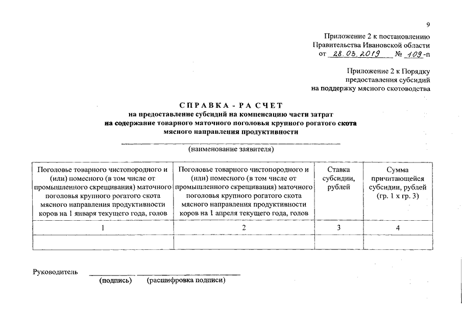 Постановление Правительства Ивановской области от 28.03.2019 N 109-п "О внесении изменений в постановление Правительства Ивановской области от 08.02.2017 N 33-п "Об утверждении Порядка предоставления субсидий на поддержку мясного скотоводства"