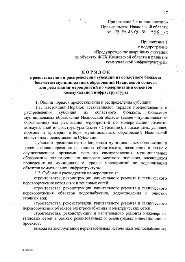 Постановление Правительства Ивановской области от 09.04.2019 N 130-п "О внесении изменений в постановление Правительства Ивановской области от 06.12.2017 N 458-п "Об утверждении государственной программы Ивановской области "Обеспечение услугами жилищно-коммунального хозяйства населения Ивановской области" (вместе с "Подпрограммой "Чистая вода Ивановской области", "Подпрограммой "Комплексная система обращения с твердыми коммунальными отходами на территории Ивановской области")