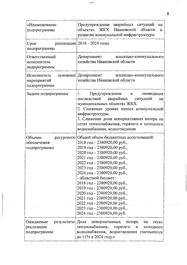 Постановление Правительства Ивановской области от 09.04.2019 N 130-п "О внесении изменений в постановление Правительства Ивановской области от 06.12.2017 N 458-п "Об утверждении государственной программы Ивановской области "Обеспечение услугами жилищно-коммунального хозяйства населения Ивановской области" (вместе с "Подпрограммой "Чистая вода Ивановской области", "Подпрограммой "Комплексная система обращения с твердыми коммунальными отходами на территории Ивановской области")
