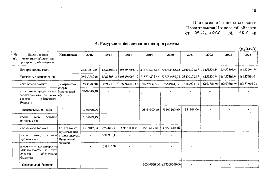Постановление Правительства Ивановской области от 09.04.2019 N 129-п "О внесении изменений в постановление Правительства Ивановской области от 18.02.2016 N 43-п "Об утверждении государственной программы Ивановской области "Развитие физической культуры и спорта в Ивановской области" (вместе с "Порядком предоставления и распределения субсидий из бюджета Ивановской области бюджетам муниципальных образований Ивановской области на закупку спортивно-технологического оборудования для создания малых спортивных площадок")