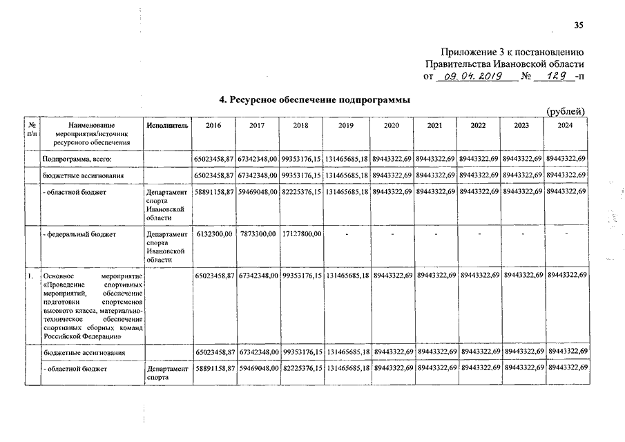 Постановление Правительства Ивановской области от 09.04.2019 N 129-п "О внесении изменений в постановление Правительства Ивановской области от 18.02.2016 N 43-п "Об утверждении государственной программы Ивановской области "Развитие физической культуры и спорта в Ивановской области" (вместе с "Порядком предоставления и распределения субсидий из бюджета Ивановской области бюджетам муниципальных образований Ивановской области на закупку спортивно-технологического оборудования для создания малых спортивных площадок")