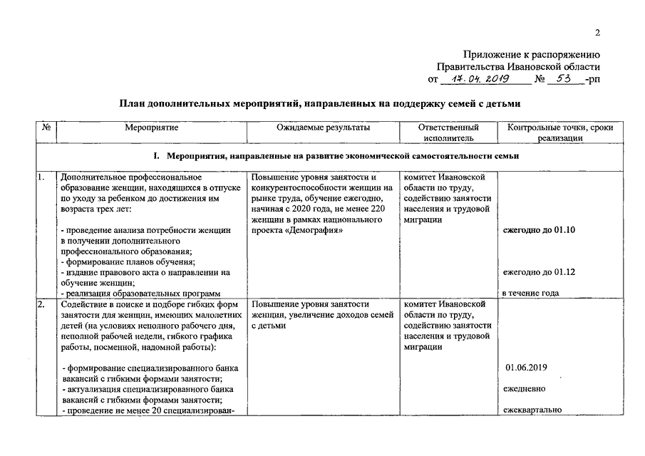 Распоряжение Правительства Ивановской области от 17.04.2019 N 53-рп "Об утверждении Плана дополнительных мероприятий, направленных на поддержку семей с детьми"