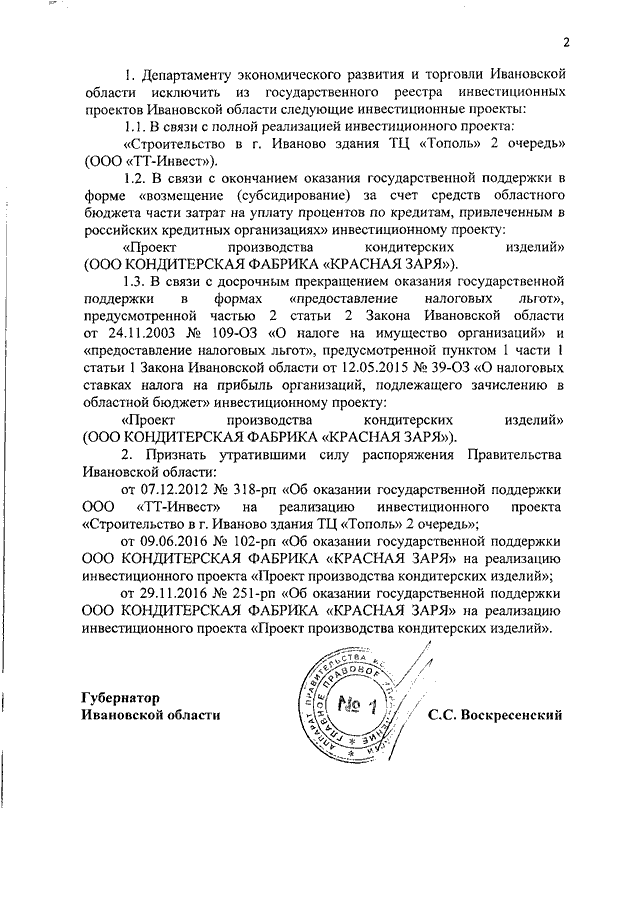 Распоряжение Правительства Ивановской области от 22.04.2019 N 54-рп "Об исключении инвестиционных проектов из государственного реестра инвестиционных проектов Ивановской области и признании утратившими силу некоторых распоряжений Правительства Ивановской области"