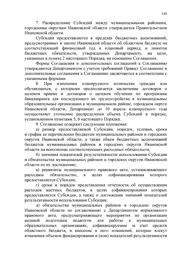 Постановление Правительства Ивановской области от 23.04.2019 N 148-п "О внесении изменений в постановление Правительства Ивановской области от 13.11.2013 N 450-п "Об утверждении государственной программы "Развитие образования Ивановской области" (вместе с "Порядком предоставления и распределения субсидий бюджетам муниципальных районов и городских округов Ивановской области на организацию целевой подготовки педагогов для работы в муниципальных образовательных организациях Ивановской области", "Порядком предоставления и распределения субсидий бюджетам муниципальных районов и городских округов Ивановской области на укрепление материально-технической базы муниципальных образовательных организаций Ивановской области", "Порядком предоставления и распределения субсидий бюджетам муниципальных образований Ивановской области на реализацию мероприятий по созданию дополнительных мест для детей в возрасте от 1,5 до 3 лет в образовательных организациях, осуществляющих образовательную деятельность по образовательным программам дошкольного образования", "Порядком предоставления и распределения субсидий бюджетам муниципальных образований Ивановской области на реализацию мероприятий по модернизации инфраструктуры общего образования", "Порядком предоставления и распределения бюджетам муниципальных районов, городских округов Ивановской области субсидий на софинансирование расходов, связанных с поэтапным доведением средней заработной платы педагогическим работникам иных муниципальных организаций дополнительного образования детей до средней заработной платы учителей в Ивановской области", "Порядком предоставления и распределения субсидий бюджетам муниципальных районов и городских округов Ивановской области на софинансирование расходов, связанных с поэтапным доведением средней заработной платы педагогическим работникам муниципальных организаций дополнительного образования детей в сфере физической культуры и спорта до средней заработной платы учителей в Ивановской области", "Порядком предоставления и распределения субсидий бюджетам муниципальных районов и городских округов Ивановской области на софинансирование расходов, связанных с поэтапным доведением средней заработной платы педагогическим работникам муниципальных организаций дополнительного образования детей в сфере культуры и искусства до средней заработной платы учителей в Ивановской области", "Порядком предоставления и распределения бюджетам муниципальных районов и городских округов Ивановской области субсидий на реализацию мероприятий по укреплению материально-технической базы и оснащение оборудованием детских школ искусств", "Порядком предоставления и распределения бюджетам муниципальных районов и городских округов Ивановской области субсидий на оснащение образовательных учреждений в сфере культуры музыкальными инструментами, оборудованием и учебными материалами", "Подпрограммой "Развитие цифровизации образовательного процесса в регионе")