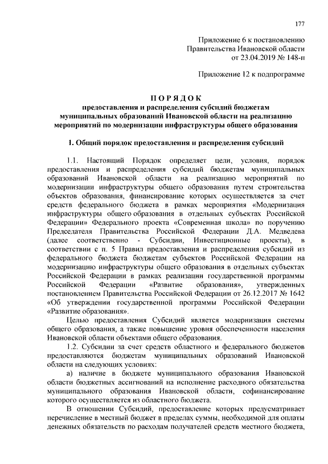 Постановление Правительства Ивановской области от 23.04.2019 N 148-п "О внесении изменений в постановление Правительства Ивановской области от 13.11.2013 N 450-п "Об утверждении государственной программы "Развитие образования Ивановской области" (вместе с "Порядком предоставления и распределения субсидий бюджетам муниципальных районов и городских округов Ивановской области на организацию целевой подготовки педагогов для работы в муниципальных образовательных организациях Ивановской области", "Порядком предоставления и распределения субсидий бюджетам муниципальных районов и городских округов Ивановской области на укрепление материально-технической базы муниципальных образовательных организаций Ивановской области", "Порядком предоставления и распределения субсидий бюджетам муниципальных образований Ивановской области на реализацию мероприятий по созданию дополнительных мест для детей в возрасте от 1,5 до 3 лет в образовательных организациях, осуществляющих образовательную деятельность по образовательным программам дошкольного образования", "Порядком предоставления и распределения субсидий бюджетам муниципальных образований Ивановской области на реализацию мероприятий по модернизации инфраструктуры общего образования", "Порядком предоставления и распределения бюджетам муниципальных районов, городских округов Ивановской области субсидий на софинансирование расходов, связанных с поэтапным доведением средней заработной платы педагогическим работникам иных муниципальных организаций дополнительного образования детей до средней заработной платы учителей в Ивановской области", "Порядком предоставления и распределения субсидий бюджетам муниципальных районов и городских округов Ивановской области на софинансирование расходов, связанных с поэтапным доведением средней заработной платы педагогическим работникам муниципальных организаций дополнительного образования детей в сфере физической культуры и спорта до средней заработной платы учителей в Ивановской области", "Порядком предоставления и распределения субсидий бюджетам муниципальных районов и городских округов Ивановской области на софинансирование расходов, связанных с поэтапным доведением средней заработной платы педагогическим работникам муниципальных организаций дополнительного образования детей в сфере культуры и искусства до средней заработной платы учителей в Ивановской области", "Порядком предоставления и распределения бюджетам муниципальных районов и городских округов Ивановской области субсидий на реализацию мероприятий по укреплению материально-технической базы и оснащение оборудованием детских школ искусств", "Порядком предоставления и распределения бюджетам муниципальных районов и городских округов Ивановской области субсидий на оснащение образовательных учреждений в сфере культуры музыкальными инструментами, оборудованием и учебными материалами", "Подпрограммой "Развитие цифровизации образовательного процесса в регионе")