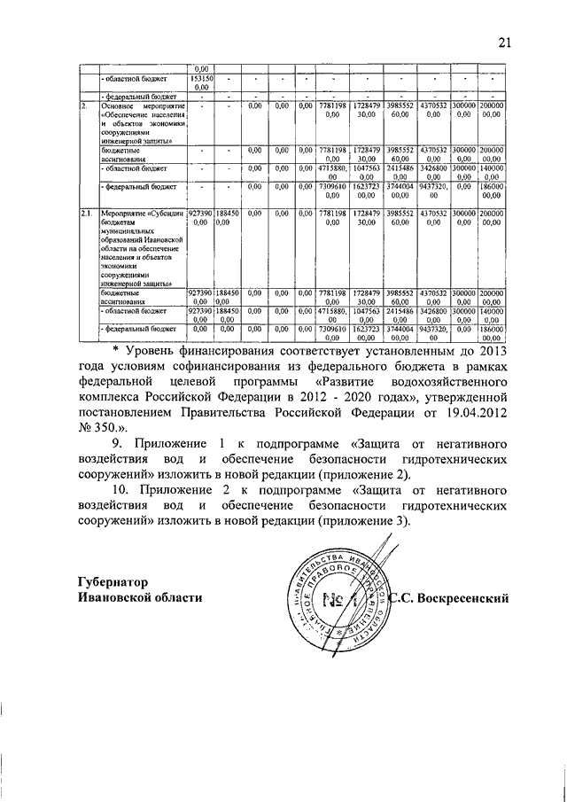 Постановление Правительства Ивановской области от 26.04.2019 N 151-п "О внесении изменений в постановление Правительства Ивановской области от 30.10.2013 N 430-п "Об утверждении государственной программы Ивановской области "Развитие водохозяйственного комплекса Ивановской области" (вместе с "Порядком предоставления и распределения субсидий бюджетам муниципальных образований Ивановской области на восстановление и экологическую реабилитацию водных объектов, утративших способность к самоочищению, предотвращение истощения водных объектов, ликвидацию их засорения и загрязнения", "Порядком предоставления и распределения субсидий бюджетам муниципальных образований Ивановской области на повышение эксплуатационной надежности гидротехнических сооружений", "Порядком предоставления и распределения субсидий бюджетам муниципальных образований Ивановской области на обеспечение населения и объектов экономики сооружениями инженерной защиты")