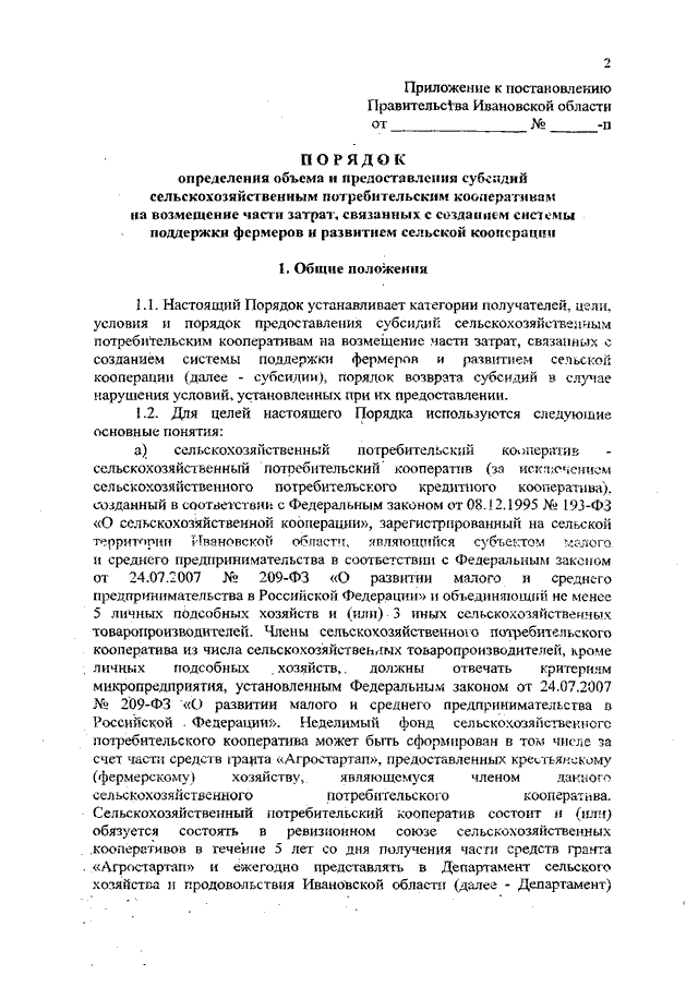 Постановление Правительства Ивановской области от 17.05.2019 N 174-п "Об утверждении Порядка определения объема и предоставления субсидий сельскохозяйственным потребительским кооперативам на возмещение части затрат, связанных с созданием системы поддержки фермеров и развитием сельской кооперации"