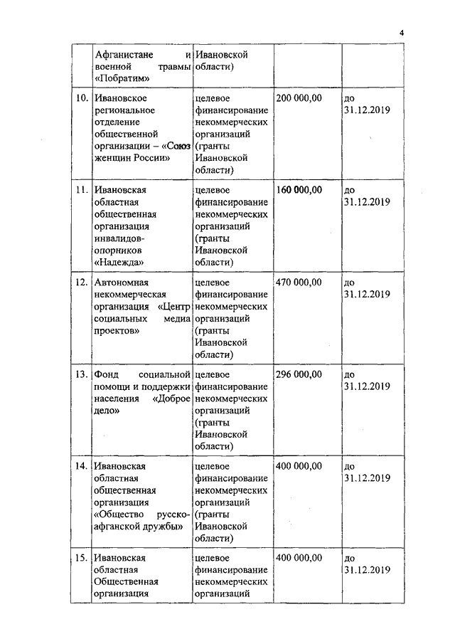 Распоряжение Правительства Ивановской области от 17.05.2019 N 76-рп "О формах, объемах и сроках оказания поддержки социально ориентированным некоммерческим организациям, зарегистрированным и действующим на территории Ивановской области, в 2019 году" (вместе с "Перечнем социально ориентированных некоммерческих организаций, зарегистрированных и действующих на территории Ивановской области, - получателей поддержки в 2019 году, формами, объемами и сроками оказания им поддержки")