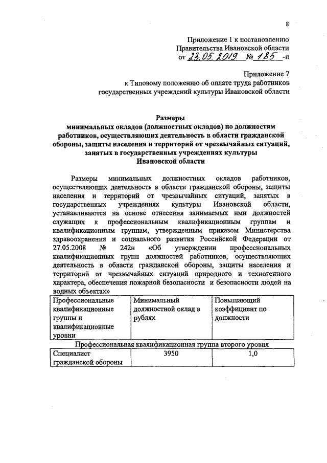 Постановление Правительства Ивановской области от 23.05.2019 N 185-п "О внесении изменений в постановление Правительства Ивановской области от 31.12.2008 N 367-п "О системе оплаты труда работников государственных учреждений Ивановской области, подведомственных Департаменту культуры и туризма Ивановской области"