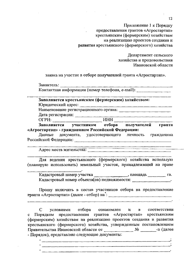 Постановление Правительства Ивановской области от 17.05.2019 N 175-п "Об утверждении Порядка предоставления грантов "Агростартап" крестьянским (фермерским) хозяйствам на реализацию проектов создания и развития крестьянского (фермерского) хозяйства"