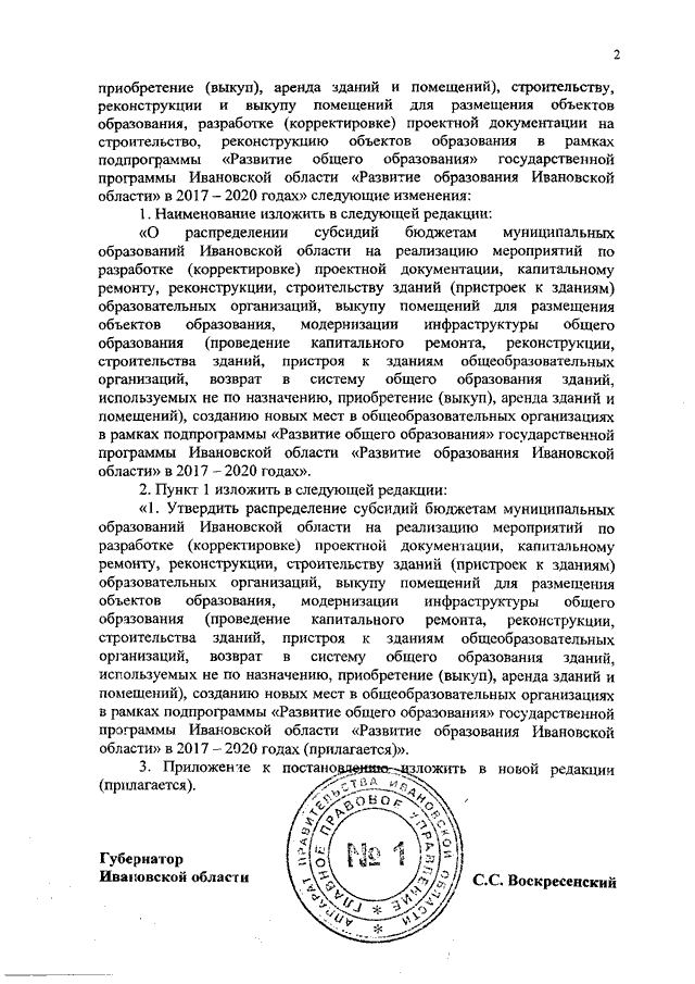 Постановление Правительства Ивановской области от 05.06.2019 N 205-п "О внесении изменений в постановление Правительства Ивановской области от 29.03.2017 N 112-п "О распределении субсидий бюджетам муниципальных образований Ивановской области на реализацию мероприятий по модернизации инфраструктуры общего образования (проведение капитального ремонта, реконструкции, строительства зданий, пристроя к зданиям общеобразовательных организаций, возврат в систему общего образования зданий, используемых не по назначению, приобретение (выкуп), аренда зданий и помещений), строительству, реконструкции и выкупу помещений для размещения объектов образования, разработке (корректировке) проектной документации на строительство, реконструкцию объектов образования в рамках подпрограммы "Развитие общего образования" государственной программы Ивановской области "Развитие образования Ивановской области" в 2017 - 2020 годах"