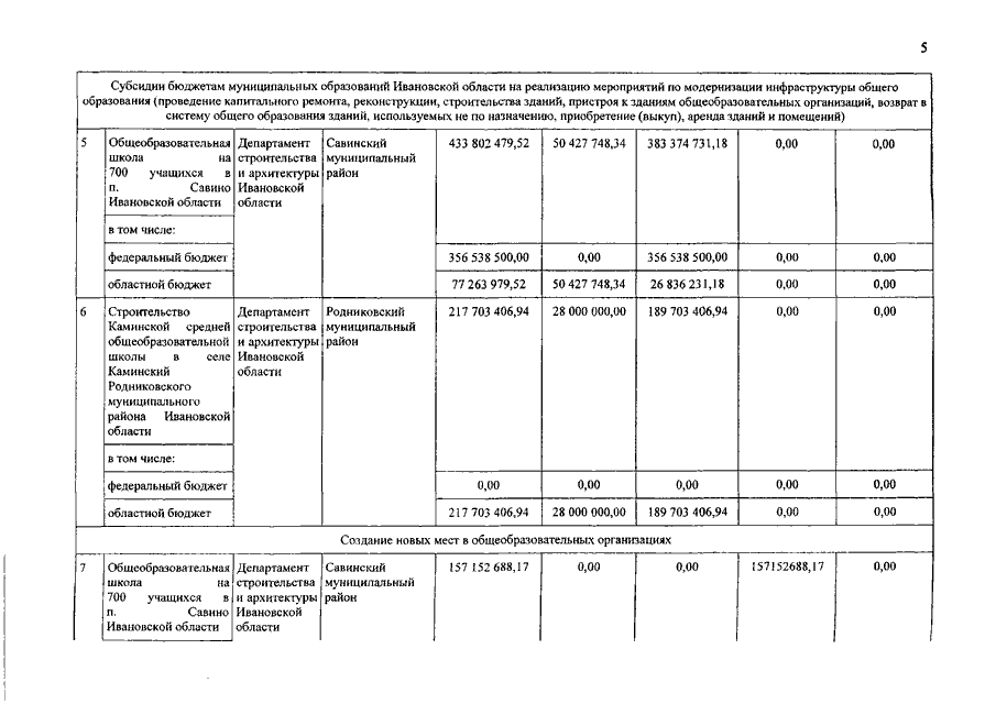 Постановление Правительства Ивановской области от 05.06.2019 N 205-п "О внесении изменений в постановление Правительства Ивановской области от 29.03.2017 N 112-п "О распределении субсидий бюджетам муниципальных образований Ивановской области на реализацию мероприятий по модернизации инфраструктуры общего образования (проведение капитального ремонта, реконструкции, строительства зданий, пристроя к зданиям общеобразовательных организаций, возврат в систему общего образования зданий, используемых не по назначению, приобретение (выкуп), аренда зданий и помещений), строительству, реконструкции и выкупу помещений для размещения объектов образования, разработке (корректировке) проектной документации на строительство, реконструкцию объектов образования в рамках подпрограммы "Развитие общего образования" государственной программы Ивановской области "Развитие образования Ивановской области" в 2017 - 2020 годах"