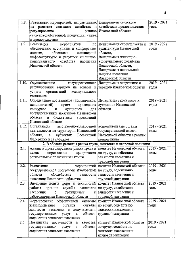 Распоряжение Правительства Ивановской области от 10.06.2019 N 86-рп "Об утверждении плана мероприятий исполнительных органов государственной власти Ивановской области по выполнению Соглашения по регулированию социально-трудовых и связанных с ними экономических отношений между Правительством Ивановской области, Региональным союзом "Ивановское областное объединение организаций профсоюзов", Ивановским областным объединением работодателей "Союз промышленников и предпринимателей Ивановской области" на 2019 - 2021 годы"