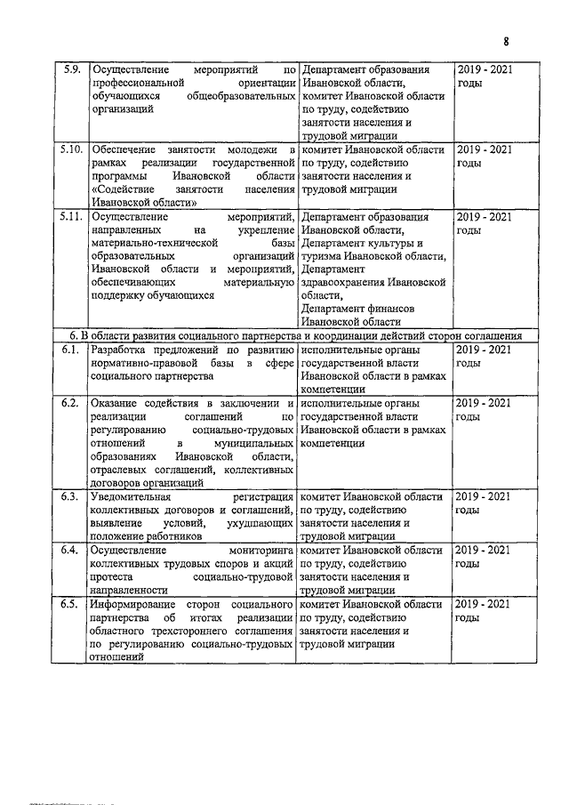 Распоряжение Правительства Ивановской области от 10.06.2019 N 86-рп "Об утверждении плана мероприятий исполнительных органов государственной власти Ивановской области по выполнению Соглашения по регулированию социально-трудовых и связанных с ними экономических отношений между Правительством Ивановской области, Региональным союзом "Ивановское областное объединение организаций профсоюзов", Ивановским областным объединением работодателей "Союз промышленников и предпринимателей Ивановской области" на 2019 - 2021 годы"