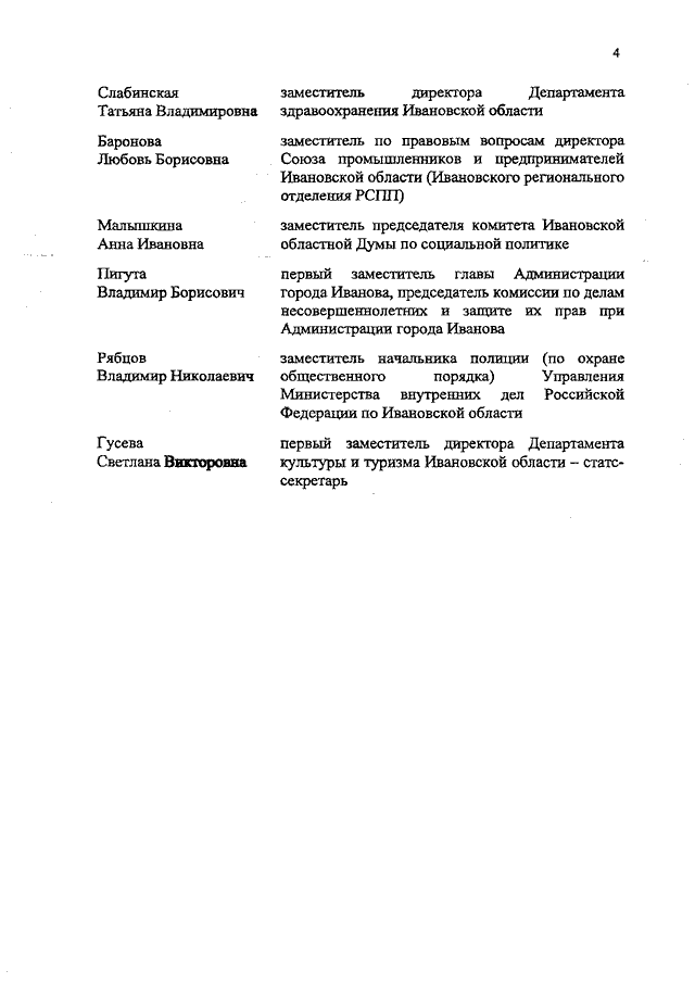Распоряжение Правительства Ивановской области от 10.06.2019 N 89-рп "О внесении изменения в распоряжение Правительства Ивановской области от 10.04.2014 N 71-рп "Об утверждении состава экспертной комиссии Ивановской области по оценке предложений об определении мест, нахождение в которых может причинить вред здоровью детей, их физическому, интеллектуальному, психическому, духовному и нравственному развитию, а также общественных мест, в которых в ночное время не допускается нахождение детей без сопровождения родителей (лиц, их заменяющих), а также лиц, осуществляющих мероприятия с участием детей"