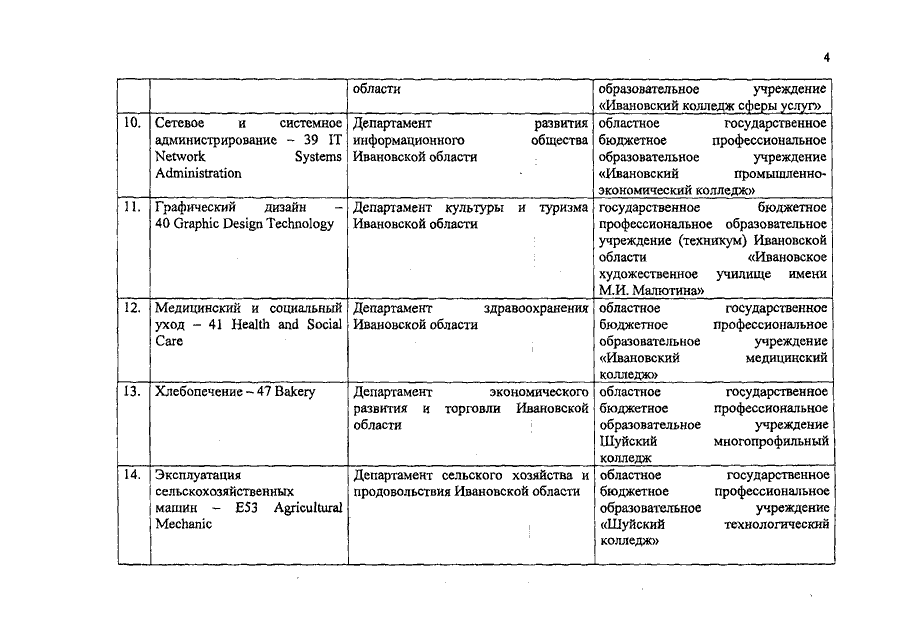 Постановление Правительства Ивановской области от 10.06.2019 N 209-п "О внесении изменений в постановление Правительства Ивановской области от 23.11.2017 N 424-п "Об определении исполнительных органов государственной власти Ивановской области и образовательных организаций Ивановской области, ответственных за развитие компетенций Регионального чемпионата "Молодые профессионалы" (WorldSkills Russia) Ивановской области" (вместе с "Перечнем исполнительных органов государственной власти Ивановской области и образовательных организаций Ивановской области, ответственных за развитие компетенций Регионального чемпионата "Молодые профессионалы" (WorldSkills Russia) Ивановской области")