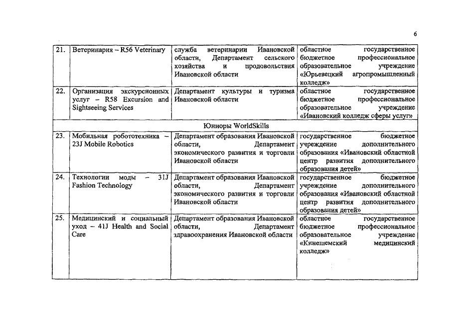Постановление Правительства Ивановской области от 10.06.2019 N 209-п "О внесении изменений в постановление Правительства Ивановской области от 23.11.2017 N 424-п "Об определении исполнительных органов государственной власти Ивановской области и образовательных организаций Ивановской области, ответственных за развитие компетенций Регионального чемпионата "Молодые профессионалы" (WorldSkills Russia) Ивановской области" (вместе с "Перечнем исполнительных органов государственной власти Ивановской области и образовательных организаций Ивановской области, ответственных за развитие компетенций Регионального чемпионата "Молодые профессионалы" (WorldSkills Russia) Ивановской области")