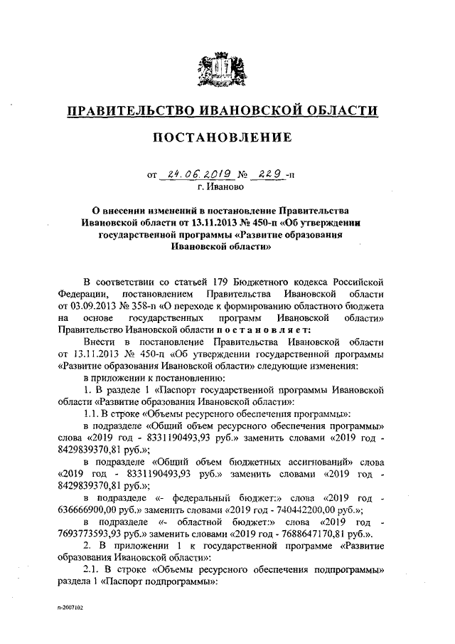 Постановление Правительства Ивановской области от 24.06.2019 N 229-п "О внесении изменений в постановление Правительства Ивановской области от 13.11.2013 N 450-п "Об утверждении государственной программы "Развитие образования Ивановской области" (вместе с "Порядком предоставления грантов в форме субсидий на реализацию пилотных проектов по обновлению содержания и технологий дополнительного образования по приоритетным направлениям")