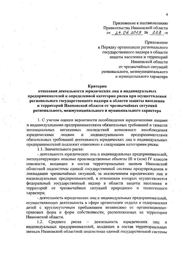 Постановление Правительства Ивановской области от 24.06.2019 N 228-п "О внесении изменений в постановление Правительства Ивановской области от 03.08.2016 N 234-п "Об утверждении Порядка организации регионального государственного надзора в области защиты населения и территорий Ивановской области от чрезвычайных ситуаций регионального, межмуниципального и муниципального характера"
