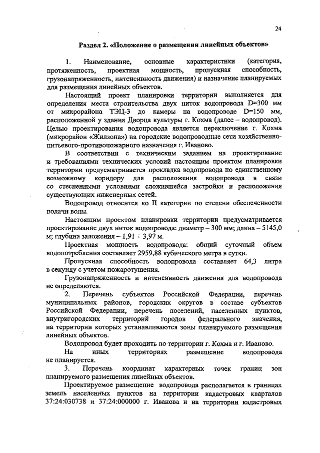 Распоряжение Правительства Ивановской области от 25.06.2019 N 98-рп "Об утверждении проекта планировки и проекта межевания территории, предназначенной для строительства двух ниток водопровода D = 300 мм от микрорайона ТЭЦ-3 до камеры на водопроводе D = 150 мм, расположенной у здания Дворца культуры г. Кохма"