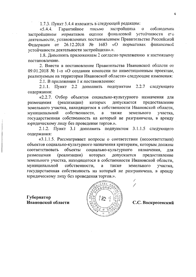 Постановление Правительства Ивановской области от 01.07.2019 N 263-п "О внесении изменений в постановления Правительства Ивановской области от 19.05.2016 N 137-п "О Порядке рассмотрения документов, обосновывающих соответствие масштабного инвестиционного проекта критериям, установленным Законом Ивановской области от 06.05.2016 N 20-ОЗ "Об установлении критериев, которым должны соответствовать масштабные инвестиционные проекты, для реализации которых допускается предоставление земельного участка, находящегося в собственности Ивановской области, муниципальной собственности, а также земельного участка, государственная собственность на который не разграничена, в аренду юридическому лицу без проведения торгов", от 09.01.2018 N 1-п "О создании комиссии по инвестиционным проектам, реализуемым на территории Ивановской области" (вместе с "Порядком рассмотрения документов, обосновывающих соответствие объекта социально-культурного назначения критериям, установленным Законом Ивановской области от 06.05.2016 N 20-ОЗ "Об установлении критериев, которым должны соответствовать объекты социально-культурного назначения, масштабные инвестиционные проекты, для размещения (реализации) которых допускается предоставление земельного участка, находящегося в собственности Ивановской области, муниципальной собственности, а также земельного участка, государственная собственность на который не разграничена, в аренду юридическому лицу без проведения торгов")