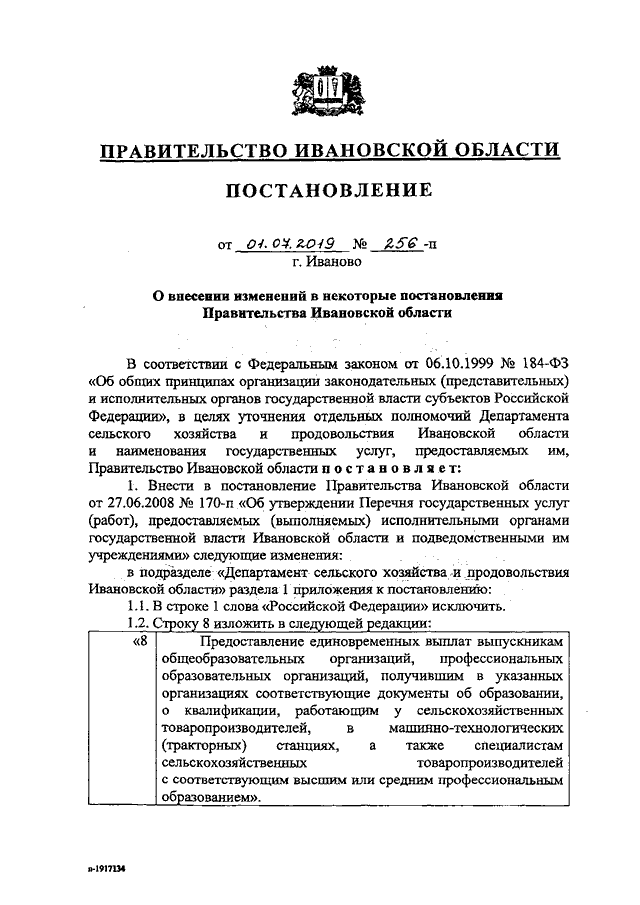 Постановление Правительства Ивановской области от 01.07.2019 N 256-п "О внесении изменений в некоторые постановления Правительства Ивановской области"