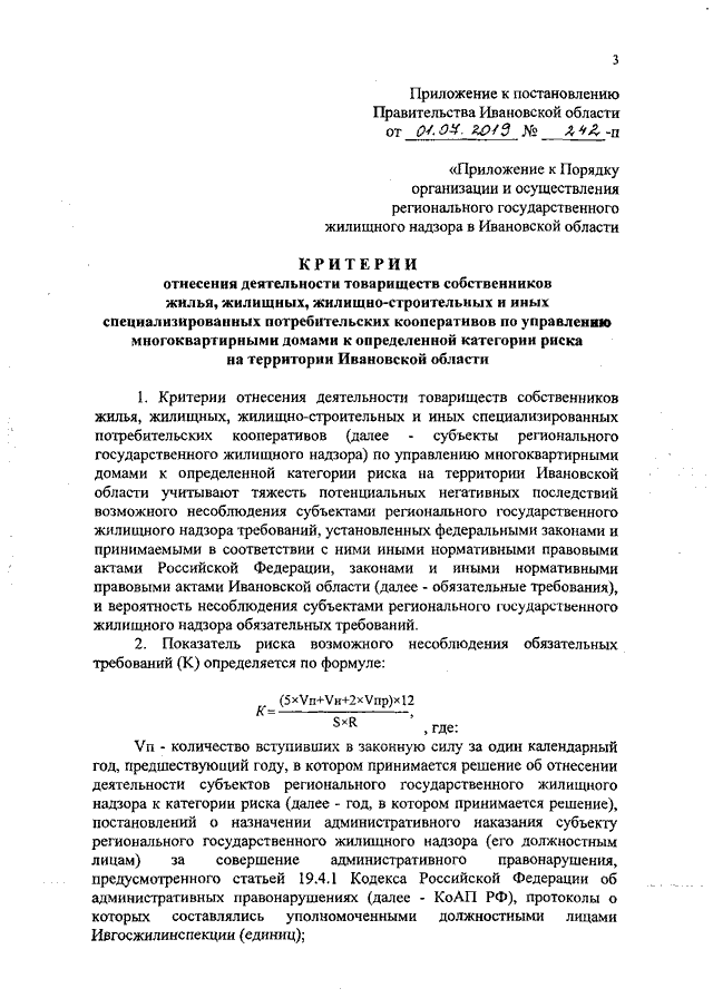 Постановление Правительства Ивановской области от 01.07.2019 N 242-п "О внесении изменений в постановление Правительства Ивановской области от 21.09.2016 N 323-п "Об утверждении Порядка организации и осуществления регионального государственного жилищного надзора в Ивановской области"