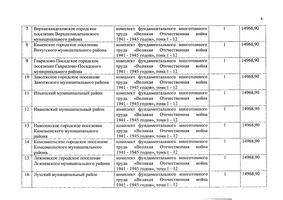 Распоряжение Правительства Ивановской области от 01.07.2019 N 103-рп "О передаче из собственности Ивановской области в собственность муниципальных образований Ивановской области фундаментального многотомного труда "Великая Отечественная война 1941 - 1945 годов"
