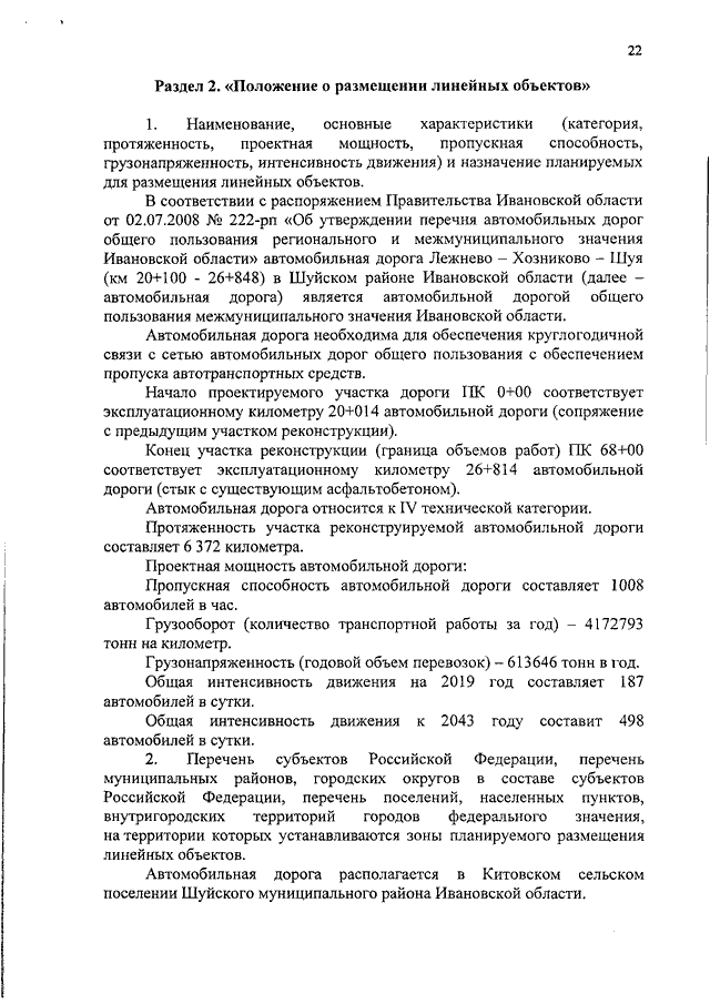 Распоряжение Правительства Ивановской области от 01.07.2019 N 104-рп "Об утверждении проекта планировки и проекта межевания территории, предназначенной для реконструкции автомобильной дороги Лежнево - Хозниково - Шуя (км 20+100 - 26+848) в Шуйском районе Ивановской области"