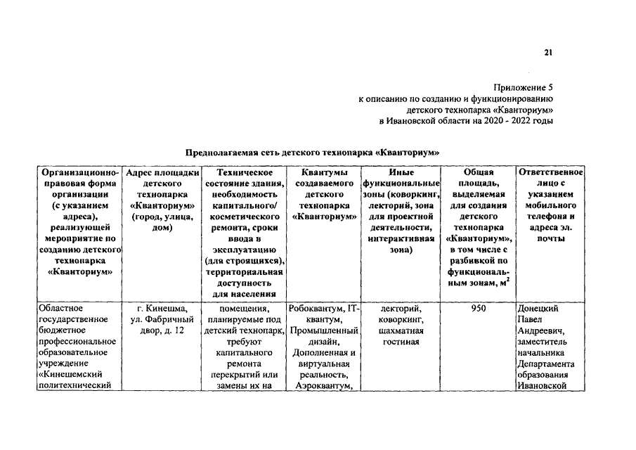 Распоряжение Правительства Ивановской области от 05.07.2019 N 110-рп "О концепции по созданию детского технопарка "Кванториум" в Ивановской области на 2020 - 2022 годы"