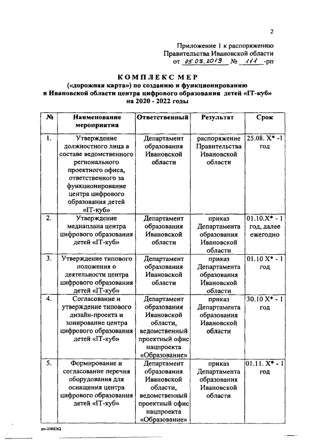 Распоряжение Правительства Ивановской области от 05.07.2019 N 111-рп "О концепции создания и функционирования в Ивановской области центра цифрового образования детей "IT-куб" на 2020 - 2022 годы"