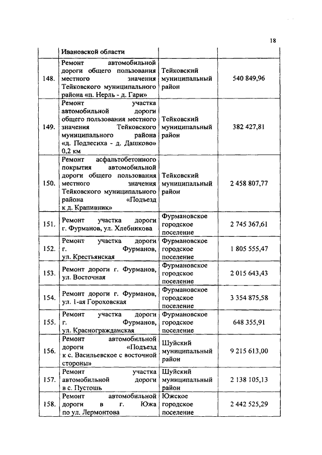 Постановление Правительства Ивановской области от 10.07.2019 N 273-п "О внесении изменения в постановление Правительства Ивановской области от 25.02.2019 N 52-п "Об утверждении перечня мероприятий, софинансируемых за счет субсидий бюджетам муниципальных образований на строительство (реконструкцию), капитальный ремонт, ремонт и содержание автомобильных дорог общего пользования местного значения, в том числе на формирование муниципальных дорожных фондов Ивановской области, в 2019 году"
