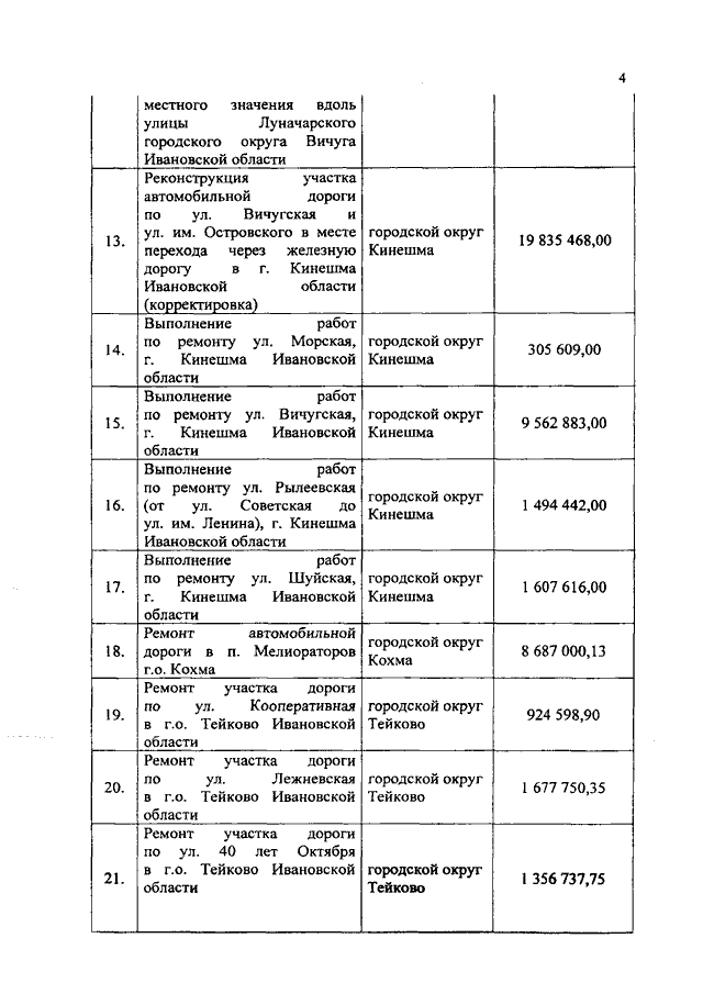 Постановление Правительства Ивановской области от 10.07.2019 N 273-п "О внесении изменения в постановление Правительства Ивановской области от 25.02.2019 N 52-п "Об утверждении перечня мероприятий, софинансируемых за счет субсидий бюджетам муниципальных образований на строительство (реконструкцию), капитальный ремонт, ремонт и содержание автомобильных дорог общего пользования местного значения, в том числе на формирование муниципальных дорожных фондов Ивановской области, в 2019 году"