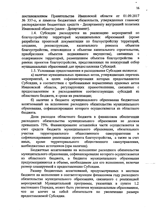 Постановление Правительства Ивановской области от 05.08.2019 N 304-п "О внесении изменений в постановление Правительства Ивановской области от 01.09.2017 N 337-п "Об утверждении государственной программы Ивановской области "Формирование современной городской среды" (вместе с "Порядком предоставления и распределения субсидий бюджетам муниципальных образований Ивановской области на организацию благоустройства территорий в рамках поддержки местных инициатив", "Адресным перечнем общественных территорий, нуждающихся в благоустройстве и подлежащих благоустройству в 2019 году", "Порядком предоставления из областного бюджета бюджетам муниципальных образований Ивановской области иных межбюджетных трансфертов на создание комфортной городской среды в малых городах и исторических поселениях - победителях Всероссийского конкурса лучших проектов создания комфортной городской среды", "Планом реализации государственной программы Ивановской области "Формирование современной городской среды")