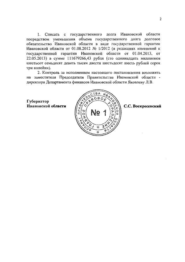 Постановление Правительства Ивановской области от 12.08.2019 N 319-п "О списании с государственного долга Ивановской области долгового обязательства Ивановской области"